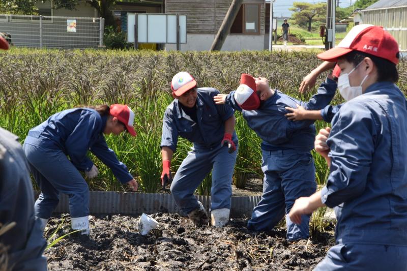 休み時間はぬかるむ水田で少しハメを外して遊びました。