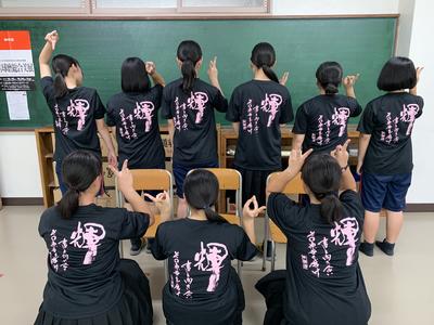 書道を通して、実技面、精神面などを磨いて、輝ける人物になれるよう、願いを込めました。言葉は、部員と話し合いながら決定しました。