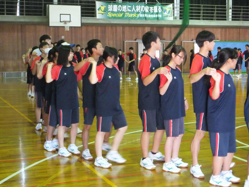9月19日、今日も学年別で体育大会の練習が行われました。3年生は、最初、フォークダンスの練習で皆、恥ずかしがりながらも楽しそうに取り組んでいました。その後、男子は農高体操の練習、女子はダンスの練習を行いました。いずれも完成間近といった様子でした。