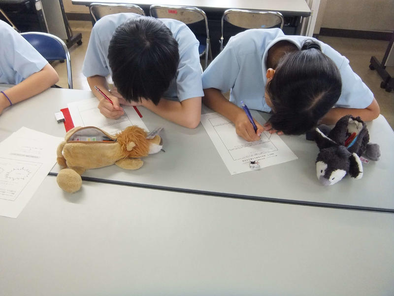 今日は、3つの課題から1つを選び、所定原稿用紙に作文を作っていきます。