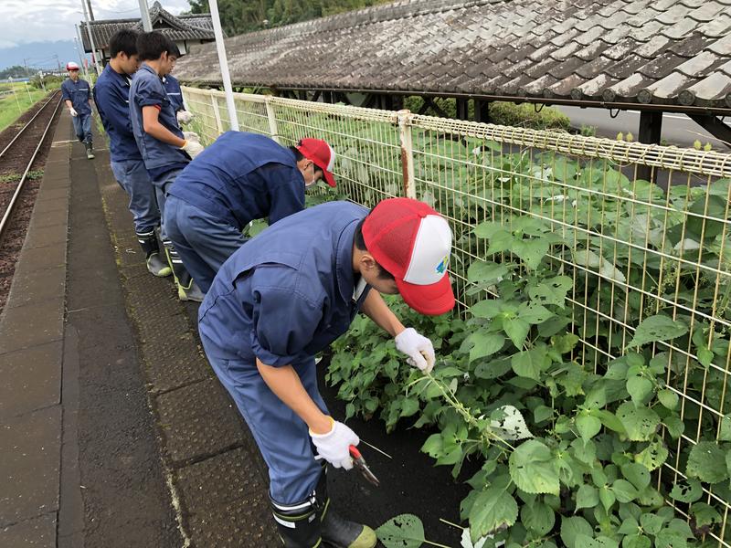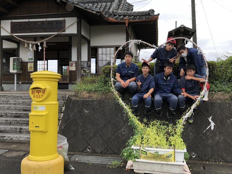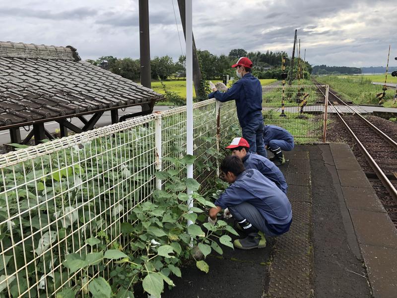 。休日には県内外や国外からも観光客が訪れるということで、本日の放課後当番実習では、駅ホームの除草作業を中心に取り組みました。皆様もこの機会におかどめ幸福駅でフウセンカズラのハートのオブジェと記念撮影はいかがですか?