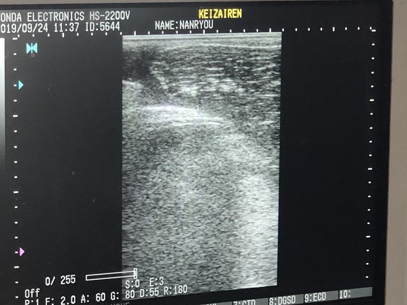 画像ではこのように移りました。上の黒っぽいところが「しこり(脂肪の塊)」です。1月までに改善されるかどうか。原因が分からないので対応も分かりませんが、生徒はあきらめていませんでした。「毎日、マッサージします。」これまでも、毎日、牛洗をしてきた生徒です。気持ちでなんとかなることでは無いかもしれませんが、その思いが嬉しく思います。