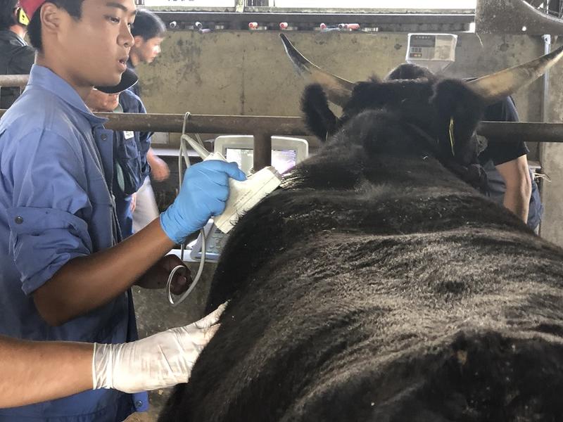 この日は地域の肥育農家の方々も肥育牛を連れてきて、エコー検査を行っていました。