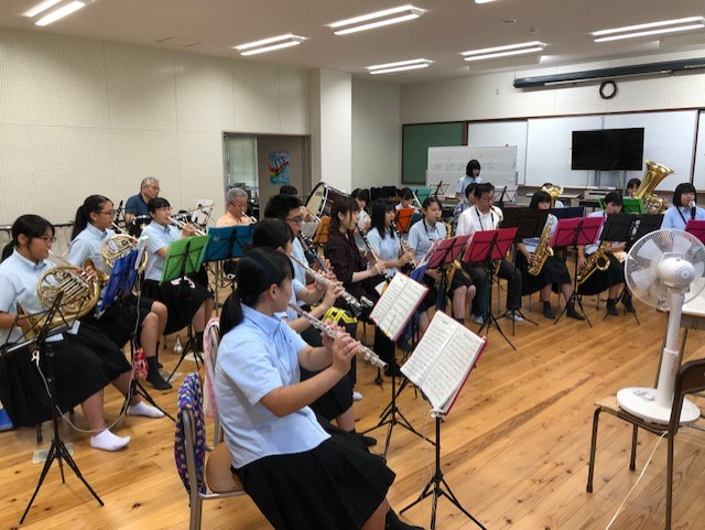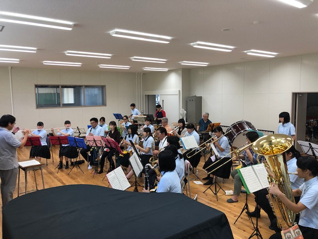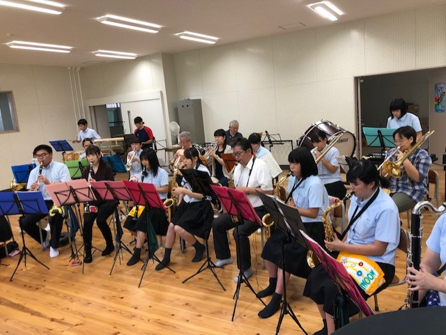 くまがわウインドアンサンブルの方々と一緒に練習を行いました。