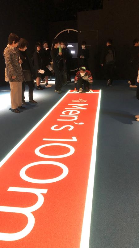 オリンピックミュージアムでは最新技術を使ってオリンピアンの記録に挑戦しました