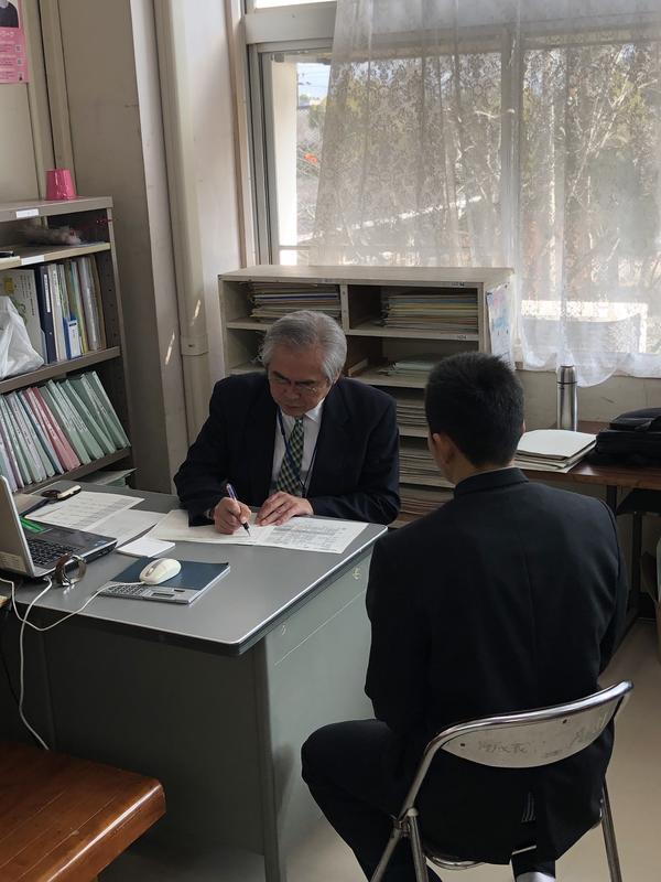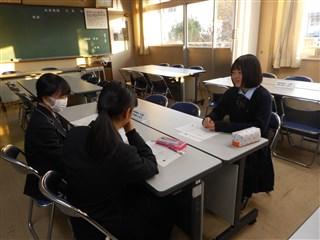 3年生の進路活動が一段落し、次年度に向けて2年生の就職希望者がキャリアサポーターの坂口さんと面談を行いました。現段階の希望を確認し、どのように進路先を決定していくかを坂口さんから話していただきました。みんな真剣な態度で臨んでいました。