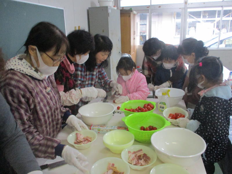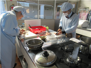 命をいただくことへの感謝の気持ちと、命をいただける過程には誰かがこのような思いをしているということを忘れず、「いただきます」「ごちそうさま」の意味を理解し、調理・試食をします。