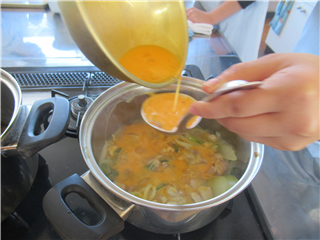 昨日と殺・解体をした鶏を使った調理実習「親子丼」を行いました。