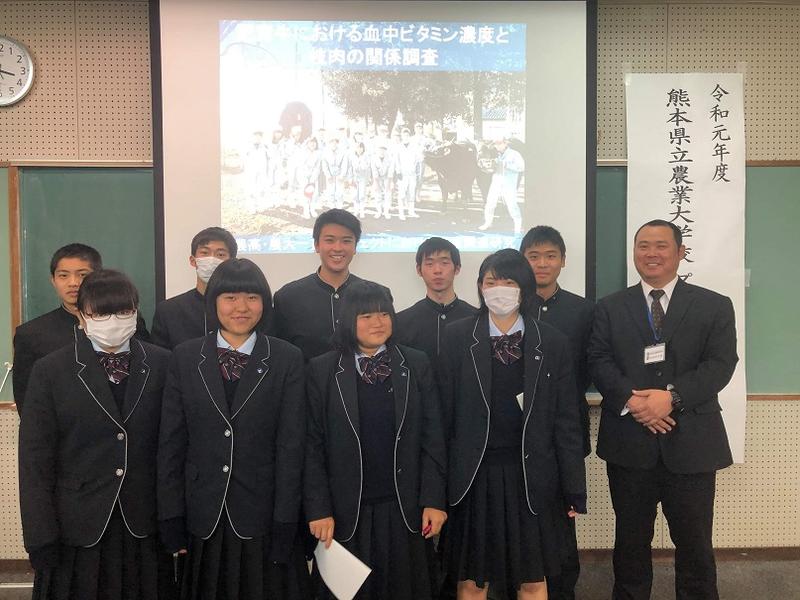 本校は県立農大と農高・農大一貫プロジェクトを行っており、その報告をさせて頂くこと、畜産学科のプロジェクト発表を視聴させて頂くことを目的に、総合農業科の生徒が熊本県立農業大学校(県立農大)を訪問しました。