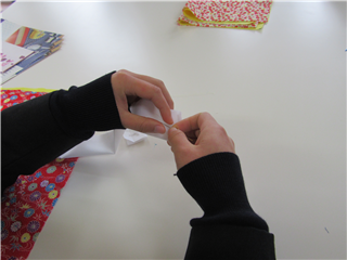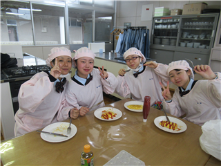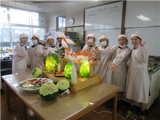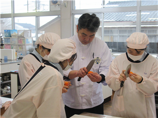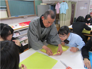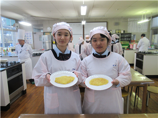 使って鶴を形作りました。オムレツも飾り切りも初めは「難しくて無理かも~」という声が生徒からありましたが、丁寧に教えていただき、作り上げることができました。お忙しいなか、教えていただきありがとうございました。