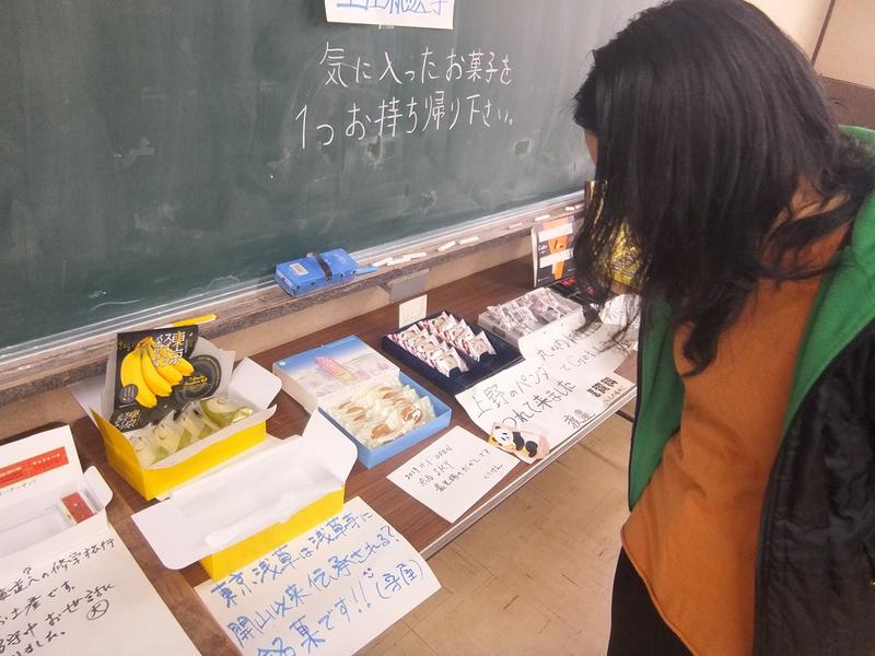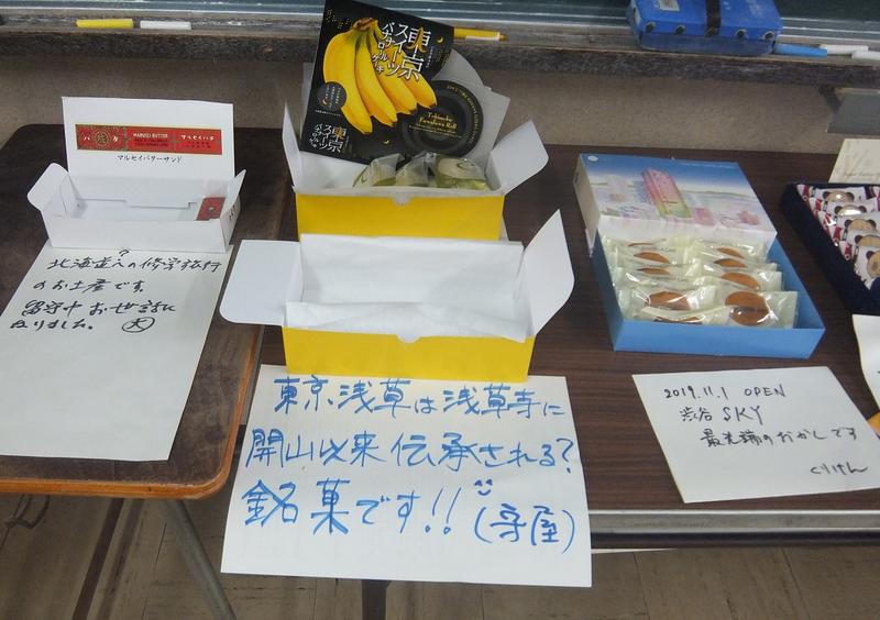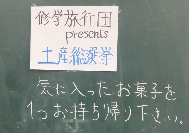 先週、修学旅行に引率で行っていた修学旅行団からお土産をいただきました。各職員から思いを込めたお土産です。さて、どれにしましょうかね。
