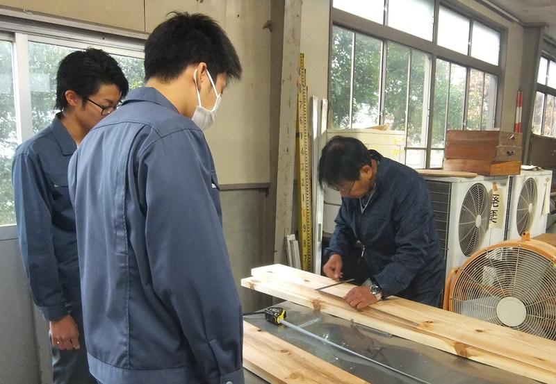 総合農業科では熊本県建築組合連合会副会長で建築大工の本田様はじめ2名の講師においでいただき規矩術などを使った本棚制作。また、熊本県フラワー装飾技能士会副会長で現代の名工、フラワー装飾士によるフラワー装飾に取組みました。専門の卓越した技能に生徒たちも真剣に学んでいました。