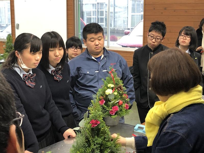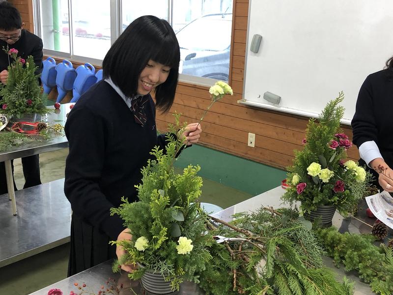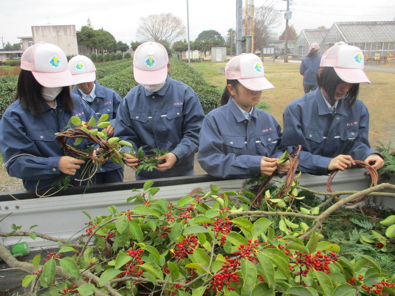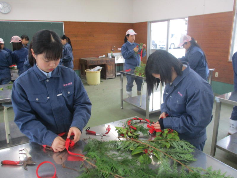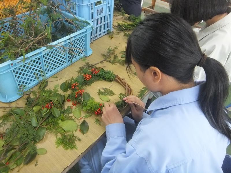 球磨人吉の魅力を知り、地域資源を活用し、新たなビジネスモデルを創ることを目的とした「球磨農林学」で生活経営科の生徒がクリスマスリースを作りました。
