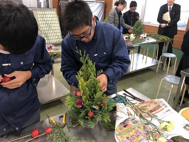 環境コースの2年生は「ミニ門松づくり」をプレゼンテーションし、一つひとつ丁寧に製作方法をご紹介できました