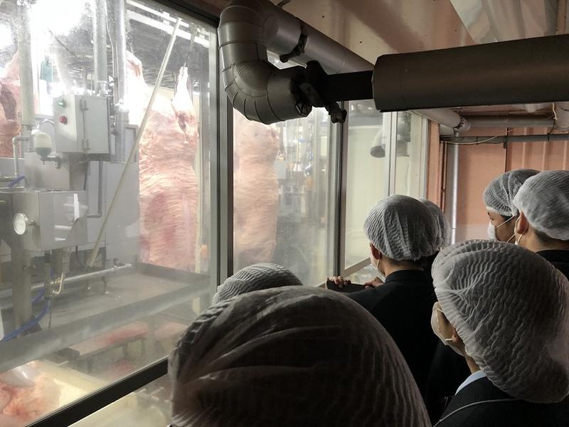 総合農業科2年動物コース、南稜就農塾1年畜産コースの生徒はゼンカイミート株式会社を訪問させて頂き、学習しました。ゼンカイミートはウシのと畜・解体、牛肉の販売、加工肉の販売を行っている会社です。ここに運ばれてくるウシは熊本県は勿論、福岡、佐賀、長崎、宮崎、鹿児島、とおくは岐阜などからも運ばれてくるとのこと。安心・安全な食材を消費者に届けるために、HACCPなど衛生面に特に注意されていました。他のと畜解体処理場との違いは「ハラール認証」。最近は中東(インドネシア、マレーシア、UAE、バーレーン、タイなど)を中心に、輸出に取り組んでおられるそうです。