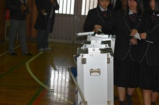 選挙権年齢が18歳に引き下げられたことに伴い、高校生の有権者としての学習がさらに重要となりました。今日は、民主政治の原理や選挙の仕組み等の学習をとおして、有権者としての責任を自覚するために、模擬投票を行いました。