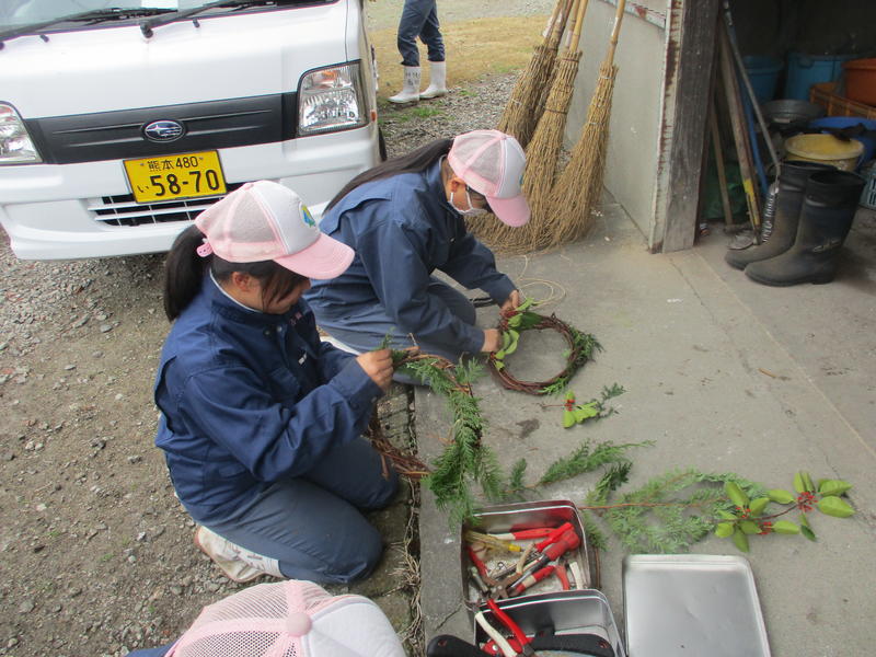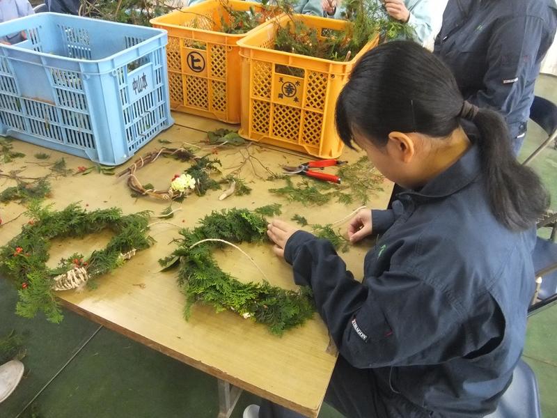 年末が近づく中、総合選択で「生物活用」を学んでいる生徒たちが、クリスマスリースの制作に取組んでいました。材料は学校の演習林などから調達してきたものです。さすが個性のある魅力的なクリスマスリースを作ることができました。2学期の最後によい思い出として残ってくれたかな?