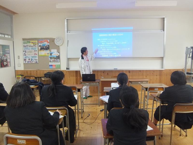 12月19日、福祉コース2年生が介護職員初任者研修で外部講師に来校いただき介護に関する学習を行いました。今日は、濱田先生によるリハビリテーション医療の概要についてでした。濱田先生、毎回丁寧なご指導ありがとうございます。