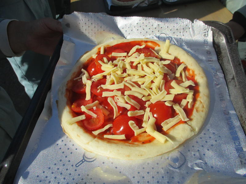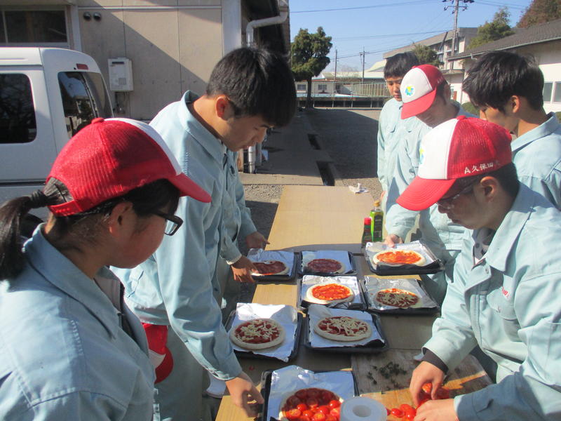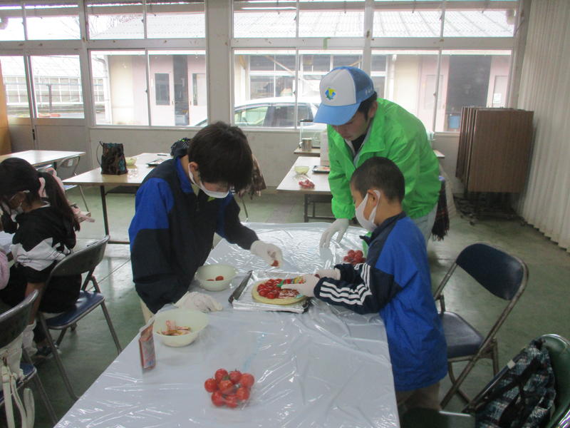 ピザづくりの様子。トマト、ベーコンは南稜産です。