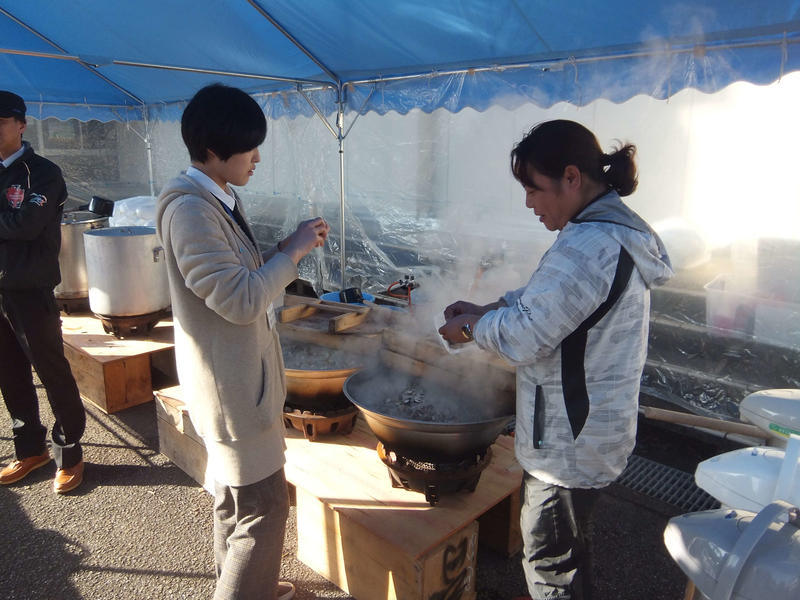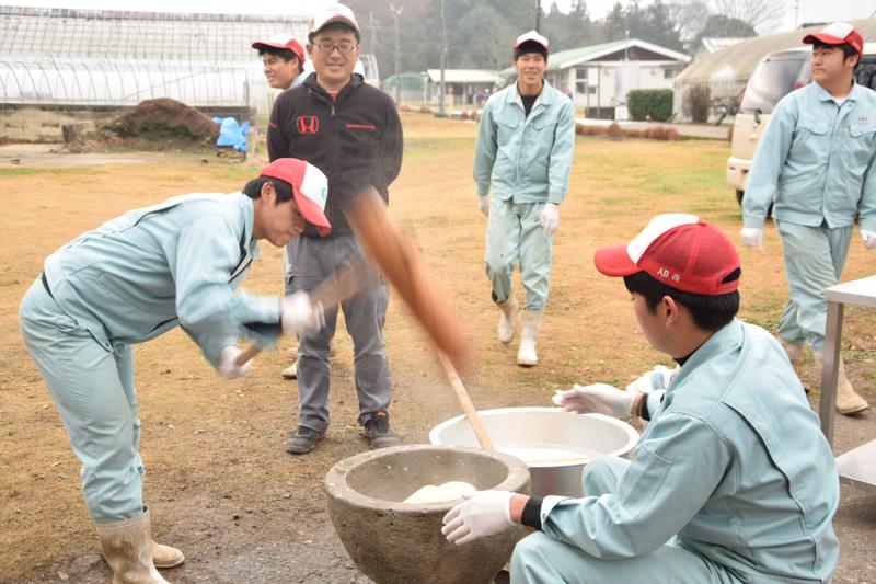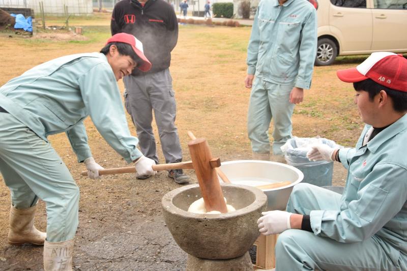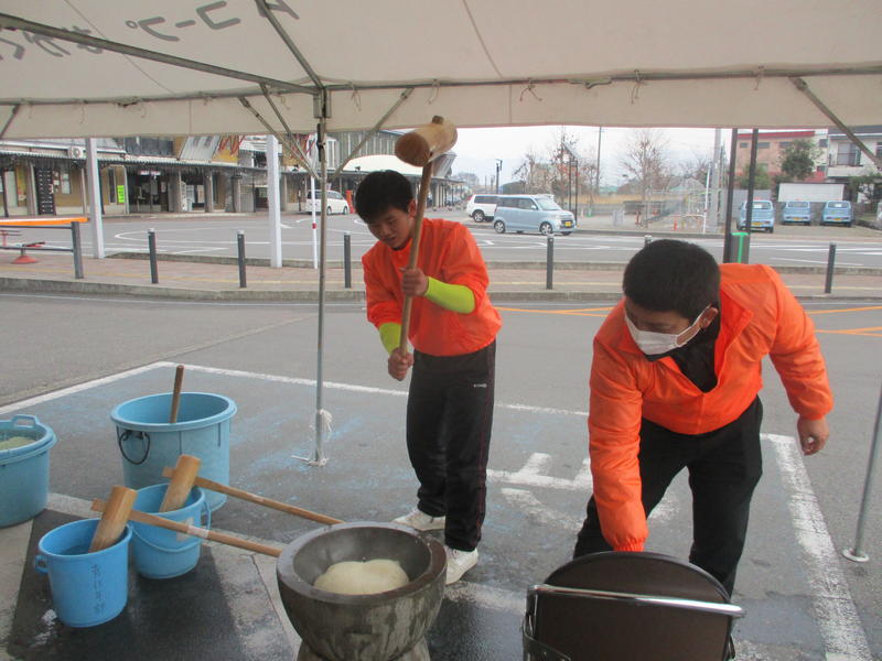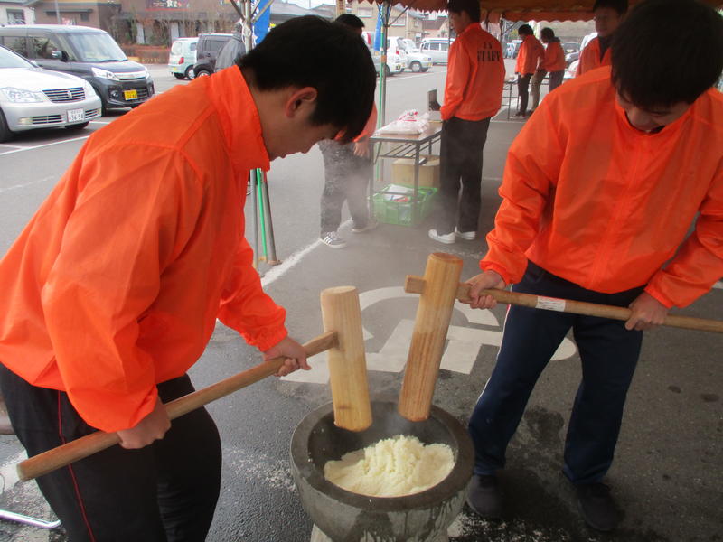 毎年恒例となりましたJAくまチャリティ餅つきに総合農業科、生活経営科の生徒が参加しました。
