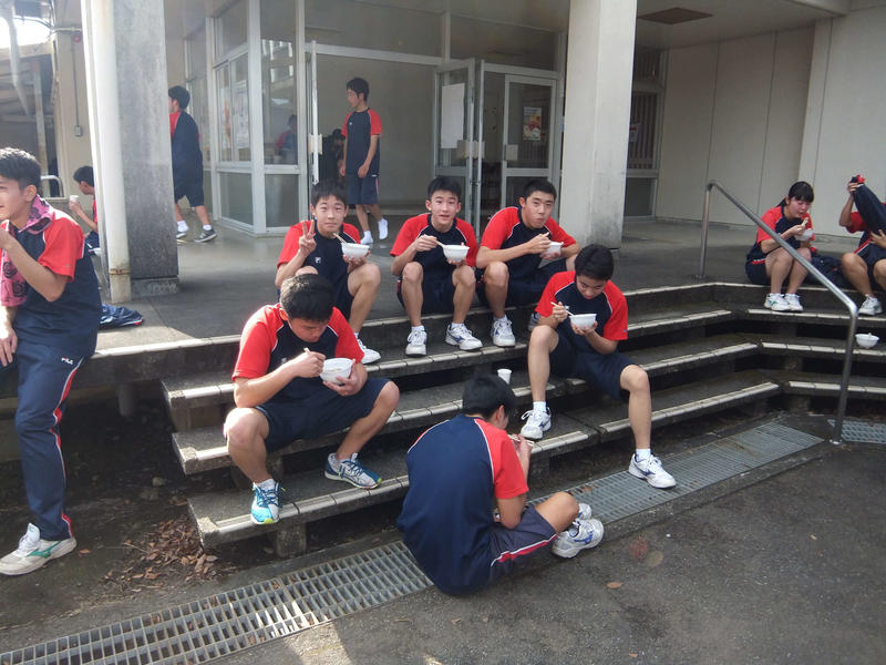 体調は概ね良好、天候は快晴で研修日和です。シッカリ食事をとってお楽しみの班別研修に備えます。