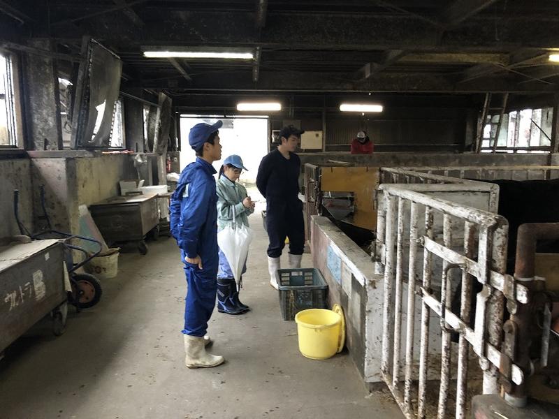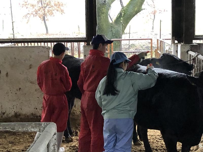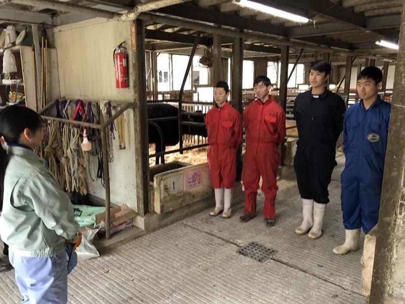 12月22日(土)、八代農業高校泉分校の南田さん(2年)が本校、神殿原農場に来場され、牛部の生徒が農場案内などの説明を行いました。