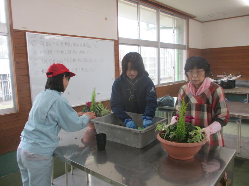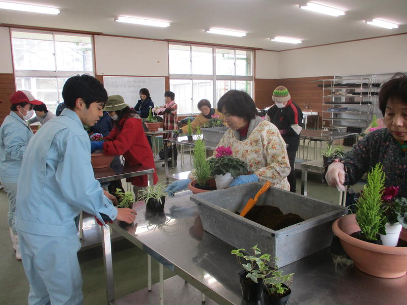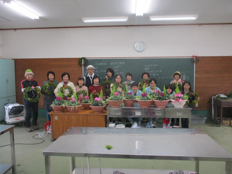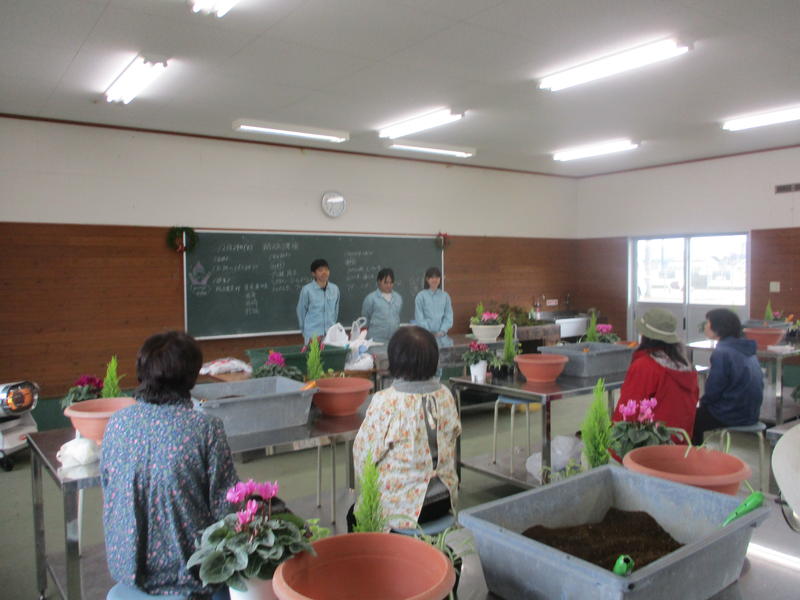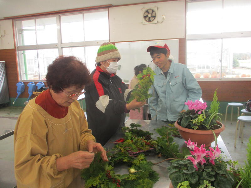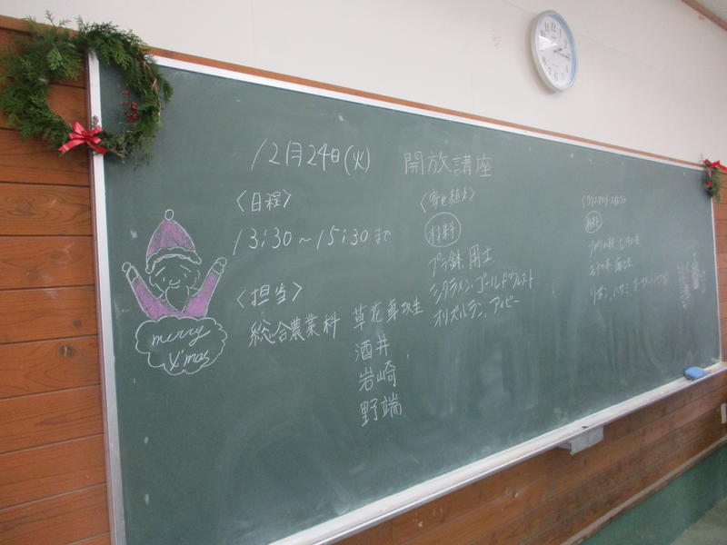 地域の方々を対象にした開放講座を開催しました。本日は草花寄せ植えとクリスマスイブということで、クリスマスリースを作りました。講師は総合農業科草花専攻の3人が務めました。
