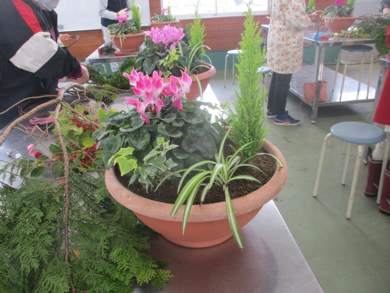 見事な寄せ植え、クリスマスリースが完成しました。年末年始のご家庭に彩りを添えることでしょう。熱心に受講していただきました受講生の皆様ありがとうございました。