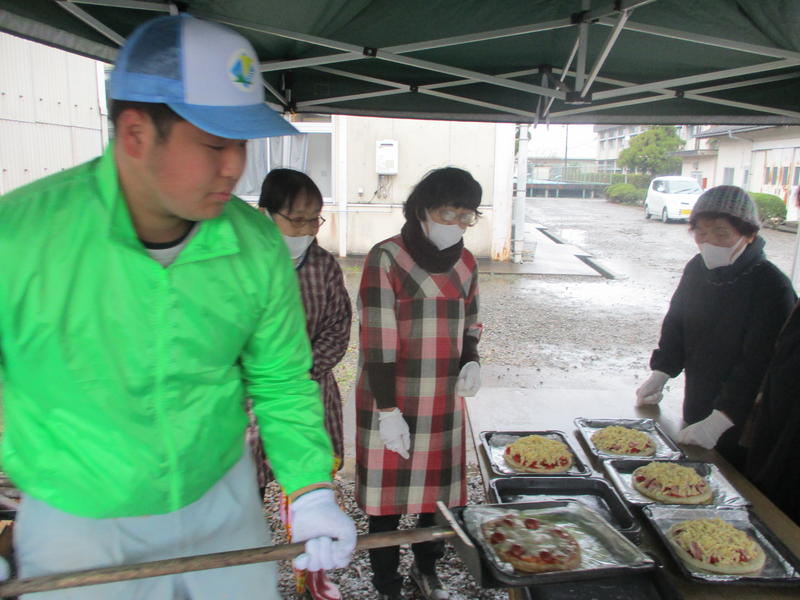12月26日に実施する開放講座のリハーサルで石焼釜を使ってピザを焼きました。