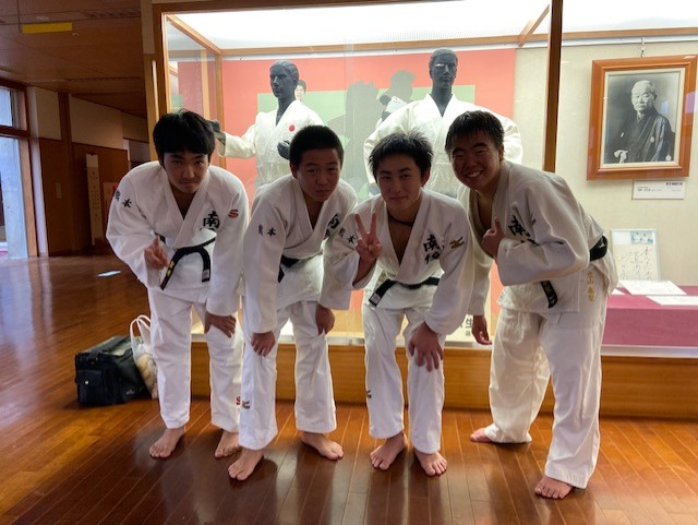 12月26日(木)宮崎県武道館で行われた「ひむか旗高校柔道大会」に参加してきました。男子団体戦で、阿蘇中央高校と合同チームを組んでいただき、佐賀県の鳥栖工業高校と対戦させていただきました。0-3で敗退してしまいましたが、貴重な経験を積むことができました。午後は、広陵高校・九国大付属高校・福工大城東高校・鹿児島水産高校・鹿屋工業高校・吹上高校・川内商工高校と練習試合をさせていただきました。