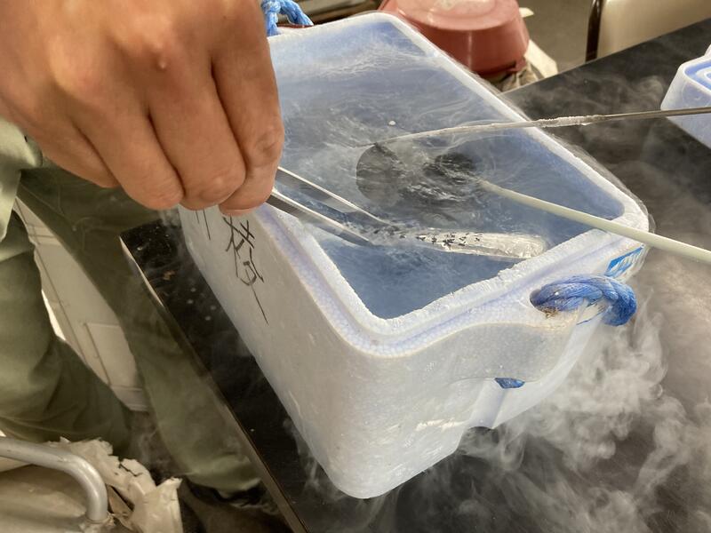 NICC(南稜インターナショナルコミュニケーションサークル)や部活動活性化基金など本校教育活動に対し多大なるご支援をいただいております横田德二様(昭和38年本校林業科卒)より今年度も馬術部への基金をいただきました。この基金を活用し、南稜高校馬術部の強い馬作りの第一歩となるウエストファーレン種の凍結精液を購入させていただきました。岩手県遠野市にあります遠野馬の里より昨日無事に到着し保管用のボンベに移し替えました。