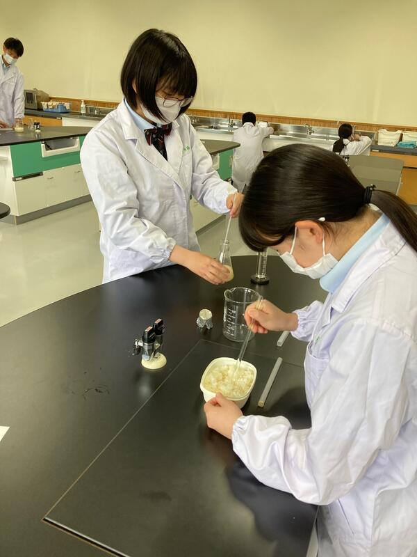 本日は、醸造の授業においてフラスコ焼酎の二次仕込みを行ない食品化学実験ではメイラード反応の実験を行いました。常に真剣に取り組む3年食品科学科の授業の様子をぜひご覧ください。