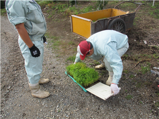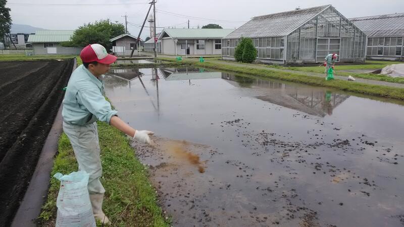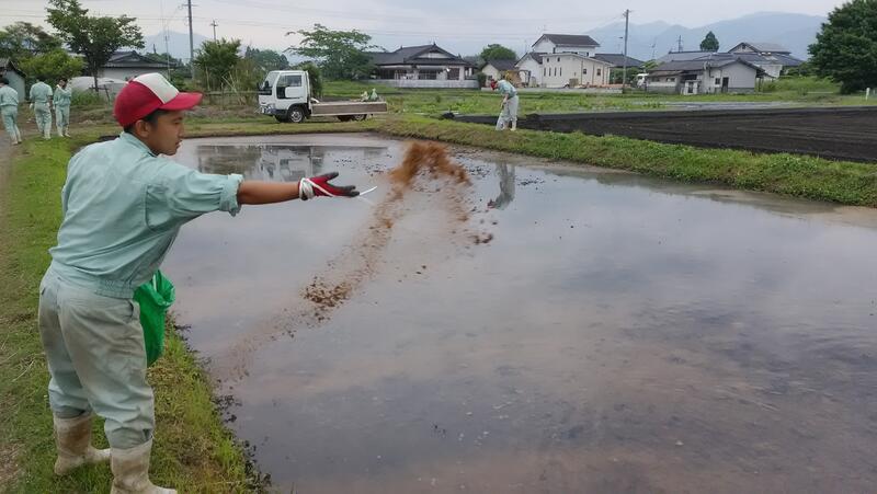 3月下旬から製造を開始し、嫌気発酵させてきたEMボカシ肥を6月1日(水)に散布しました。