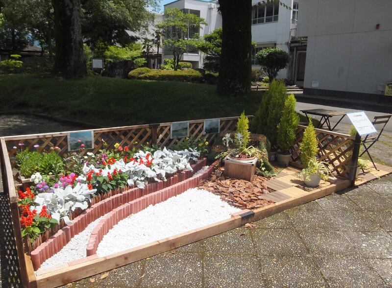 第38回全国都市緑化くまもとフェアにおいて銀賞を受賞した庭園を正面玄関前に再現しました。