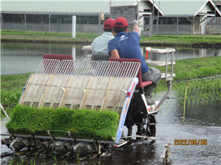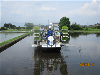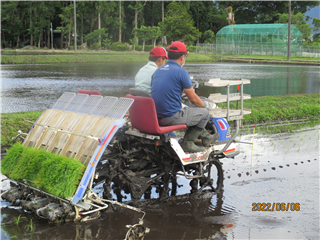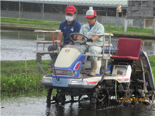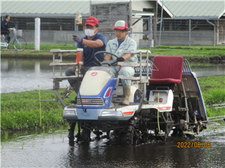6月9日(木)の午後から直進アシスト田植機による田植えを学習しました。本校の田植機による田植えを経験し、簡単な操作できれいに田植えができました。本校職員も乗車して体験しました。