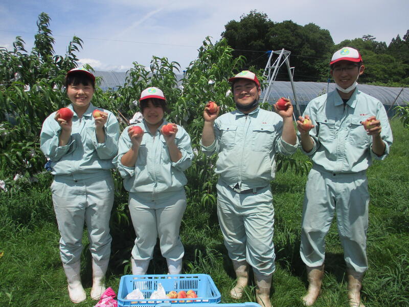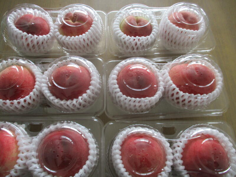 まだ走りの時期ですが、収穫は早生、晩生と2ヶ月ほど続き、旬の時期には大きくて甘いモモが収穫できます。