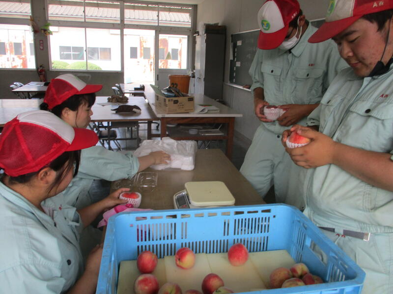 梅雨時期の雨上がりを待って、モモの収穫始めました。