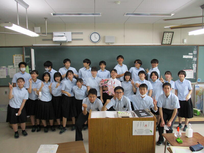 そして実習最後のHRでは、クラスからサプライズでプレゼントが渡され、記念撮影を行ないました。吉村さんもとても喜んでくれており、こうした経験が良い思い出となってくれればと願ってやみません。