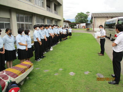 学校に到着し、解散しました。結果は分野Ⅰ類「生産・流通・経営」と分野Ⅱ類「開発・保全・創造」で優秀賞、分野Ⅲ類「ヒューマンサービス」が最優秀賞を受賞しました。分野Ⅲ類は九州大会に向けて努力が続きます。