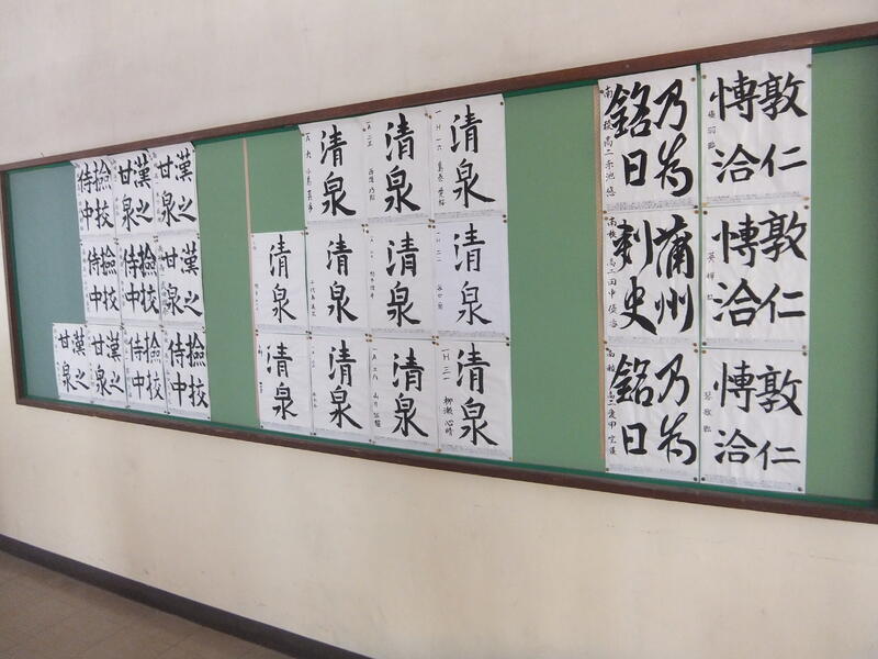 書道の授業で書き上げた作品が書道室前廊下に掲示してありました。どれも力作揃いです。