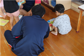 積極的に抱っこしたり子どもが安心できるようにそばにいてあげたり、南稜生、頑張っています