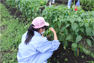 「農業と環境」で栽培しているナス、ピーマン、スウィートコーンを収穫しました。