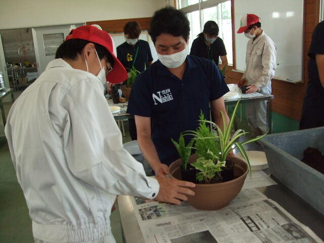 管内の小中学校の先生方22名が、動物コース、植物コース、環境コースに分かれて酪農教育ファーム、寄せ植え、木工などを体験されました。