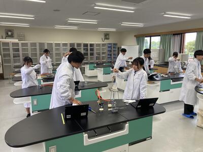 各班でそれぞれが設定した課題解決に向けて取り組んでいる課題研究の授業ですが、今日もペアと協力しながら頑張っていました