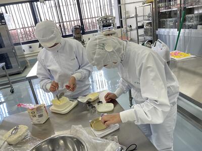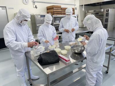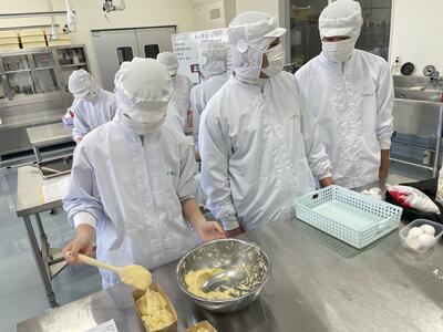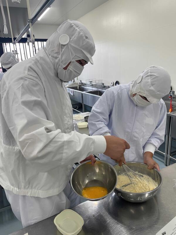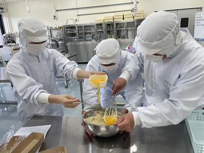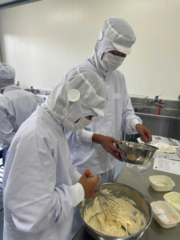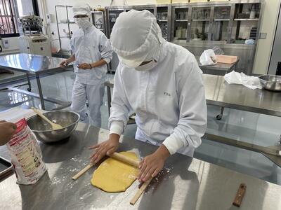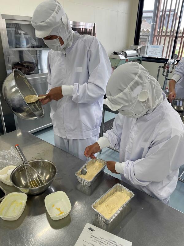 総合農業科2年生が食品科学科で製造実習に取組んでいます本日はパウンドケーキの製造を行いました