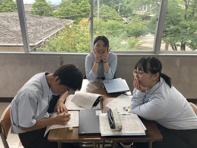 問題集を何度も解いて確認し、クラス全員が同じ目標に向けて頑張っています