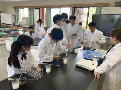 先週の班が入れ替わりタンパク質のゲル化について実験を行いました終始穏やかな雰囲気の中、実験に取り組むことができました