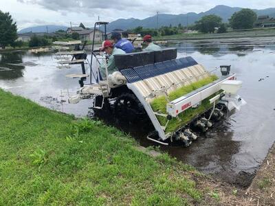 いよいよ植物コースの作物専攻では、田植えが始まりました。学校にも田植え機はあるのですが、今日は、業者さんに来ていただき、最新の田植え機を使わせていただきました。これはGPSで自動運転してくれるので、効率的に田植えができるのです。これがスマート農業です!。