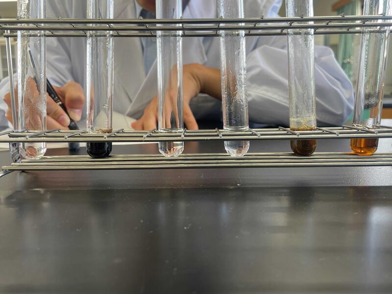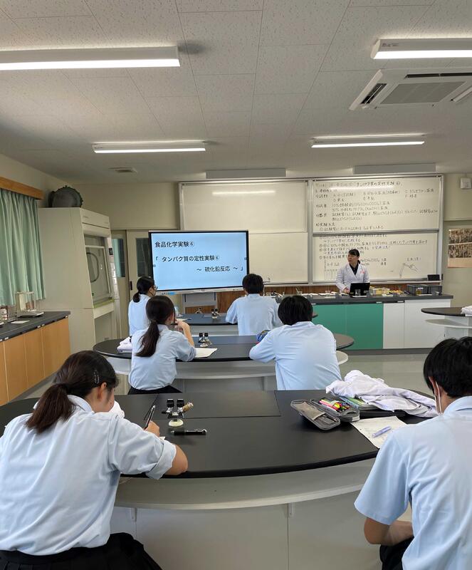 本日の食品化学ではタンパク質の定性実験(硫化鉛反応)をおこないました