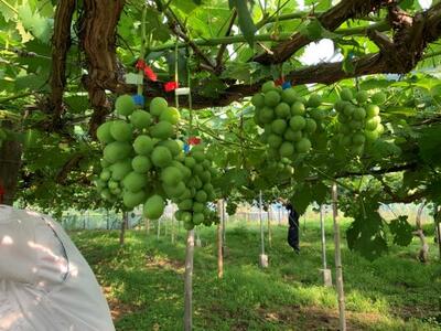 南稜高校では、1年生は短期寮という制度があり、3泊4日で農場当番実習を行います。これは総合農業科の果樹園です。シャインマスカットの実が少しずつ大きくなっています。その中で「摘粒(てきりゅう)」といい実の数を調整していくのです。これによりおいしいシャインマスカットになるのです。
